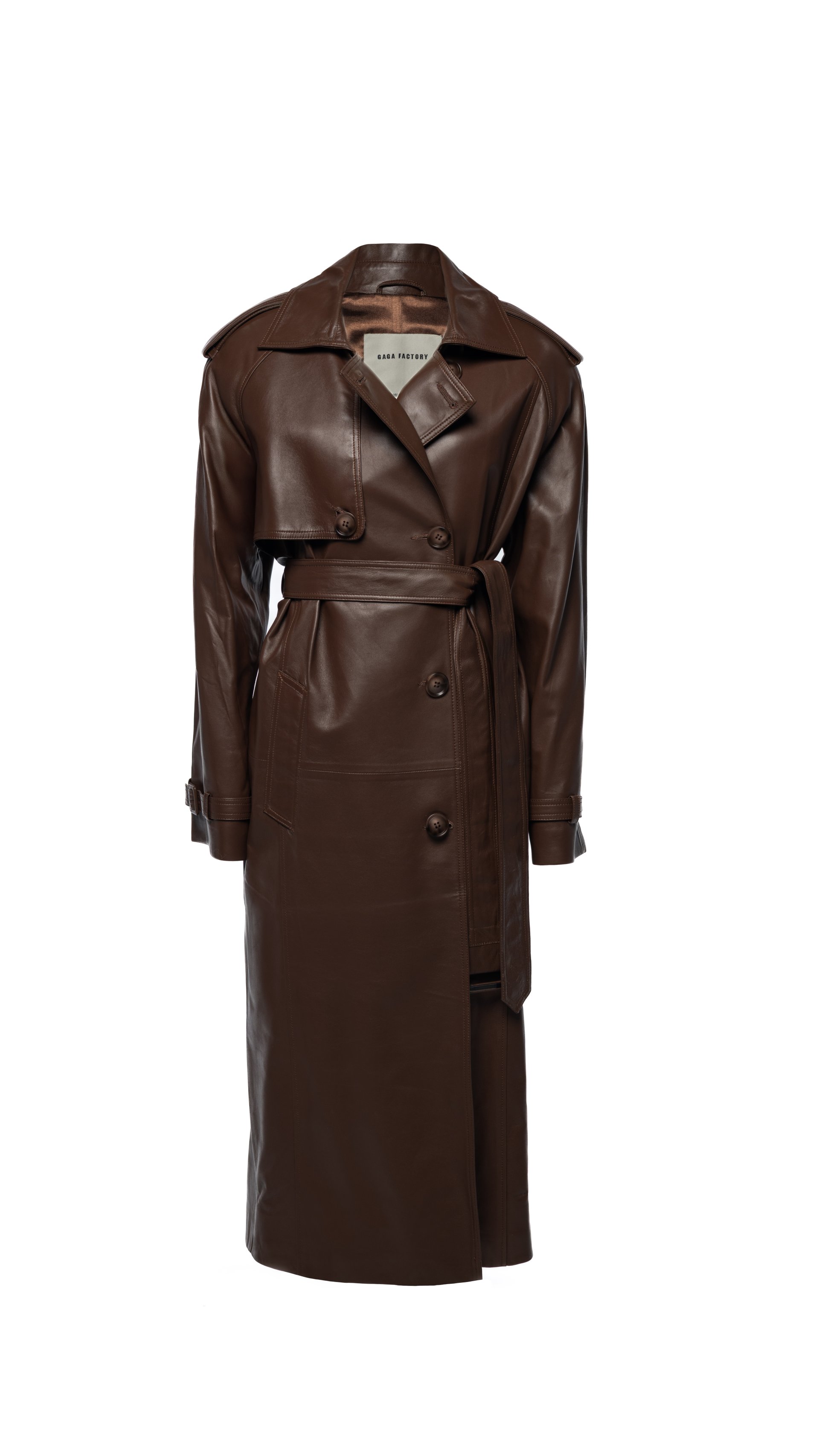 Amber trench leather coat